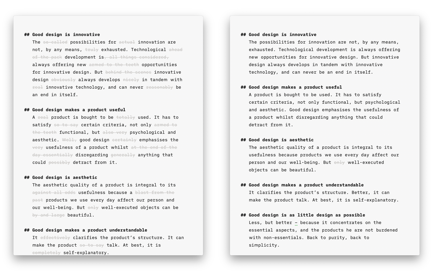 A personal editor-in-chief on your device, carefully reviewing your text for redundancies, clichés, and filler words.
