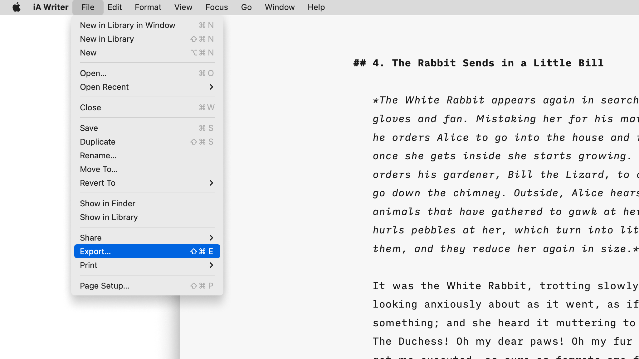 Learn how to export, share and print your iA Writer documents.