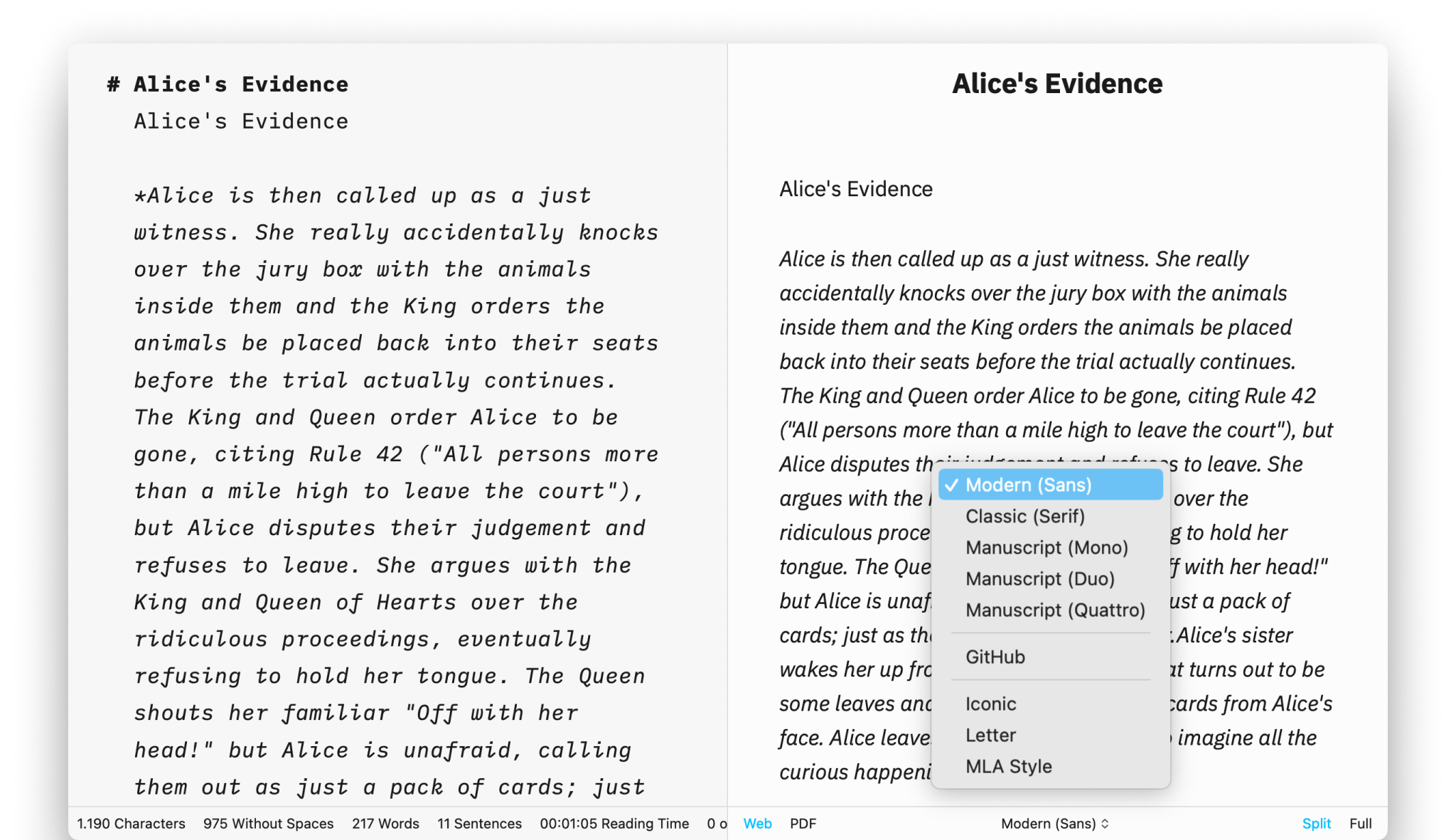 To see your formatted text and to change its look, open Preview.