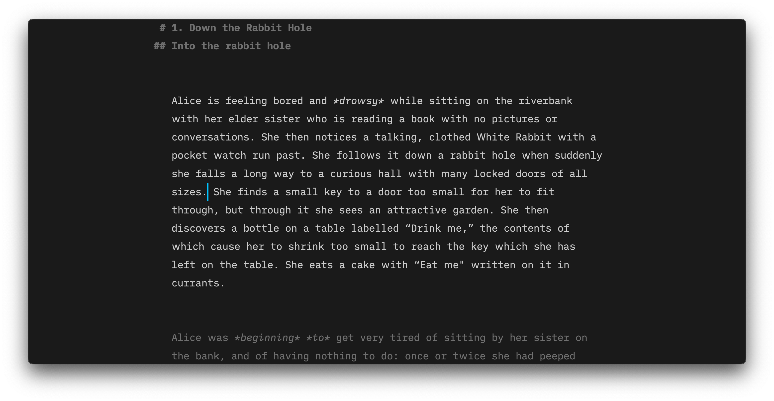 The whole active paragraph is highlighted while the surrounding text is dimmed.